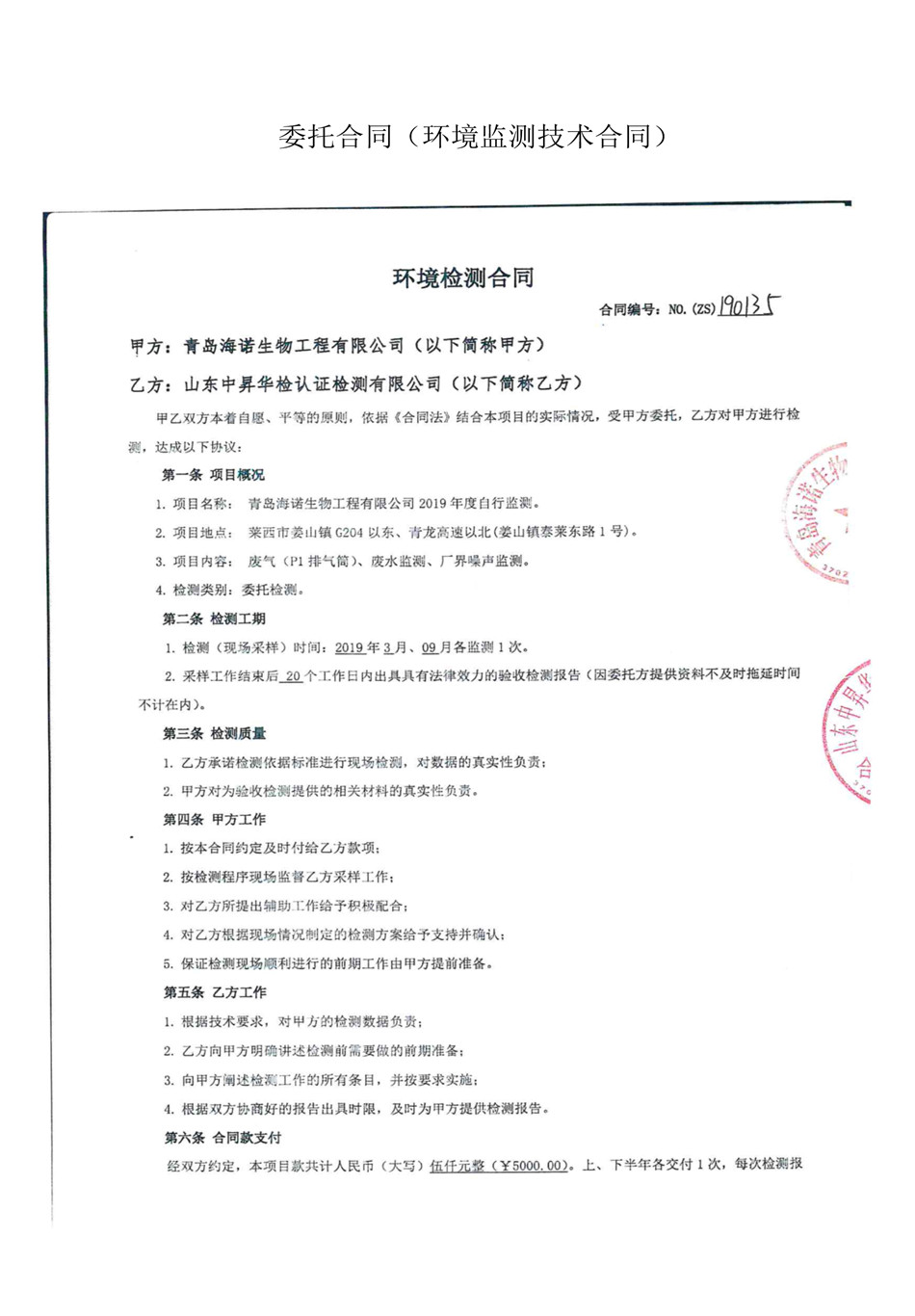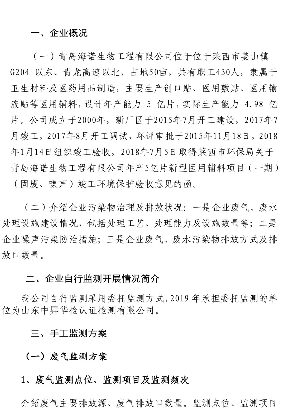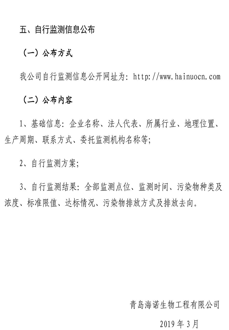青島海諾生物工程有限公司自行監(jiān)測方案
